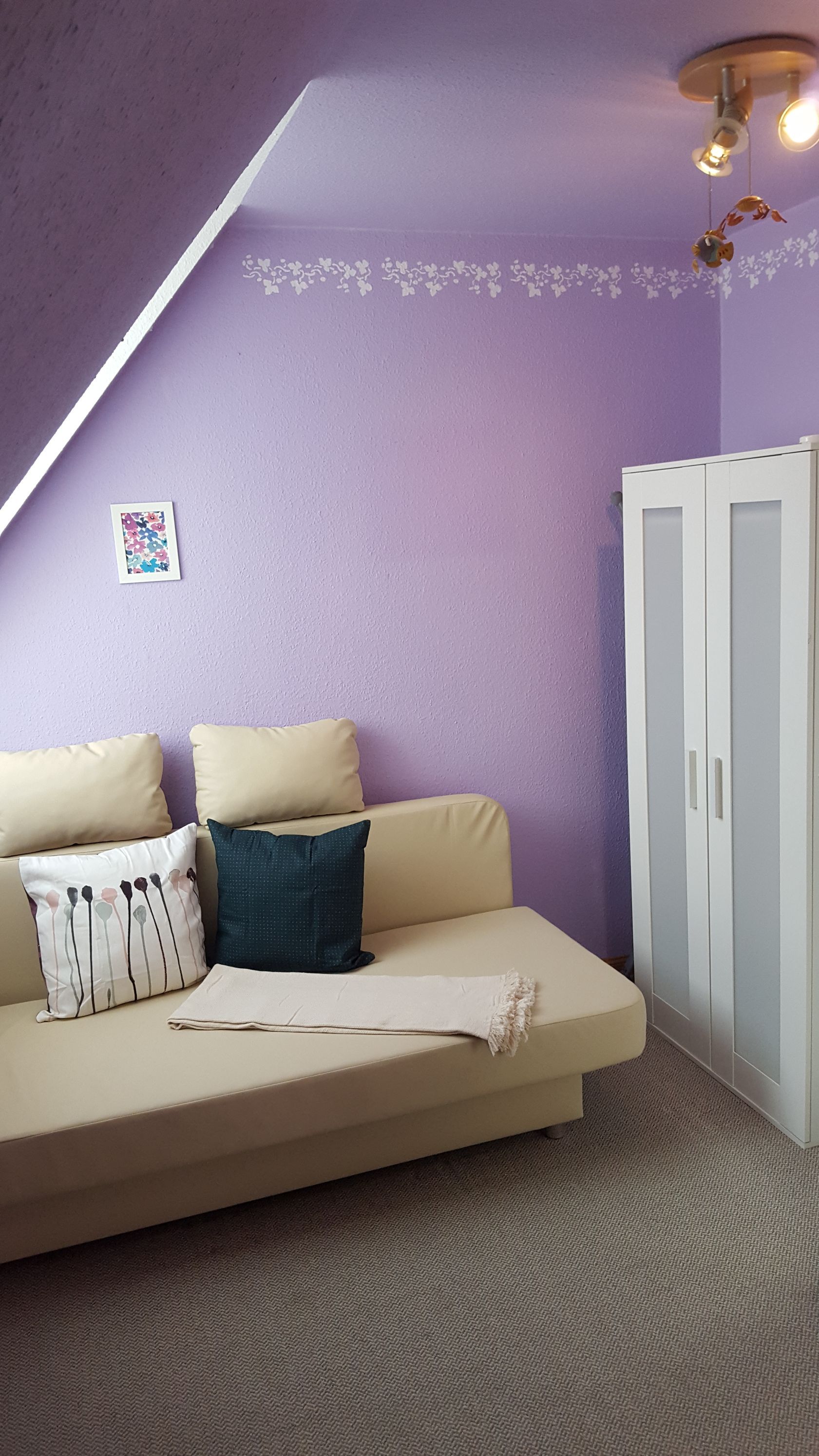Doppelcouch (1.40m) für 2 Personen, Schrank, Bügelbrett, Bügeleisen, Treppe ins Dachgeschoss