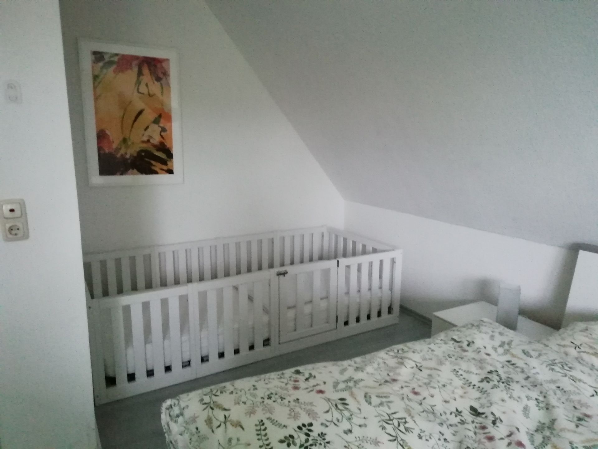 Doppelbett 2 Personen, Rausfallschutz, Babybett, Schreibtisch mit Stuhl, Teetisch, Schrank, Verdunklung, Insektengitter